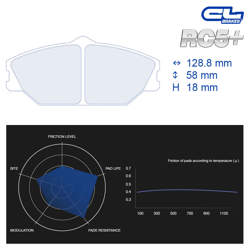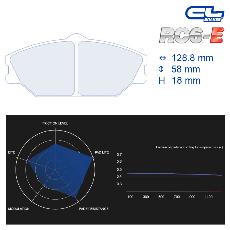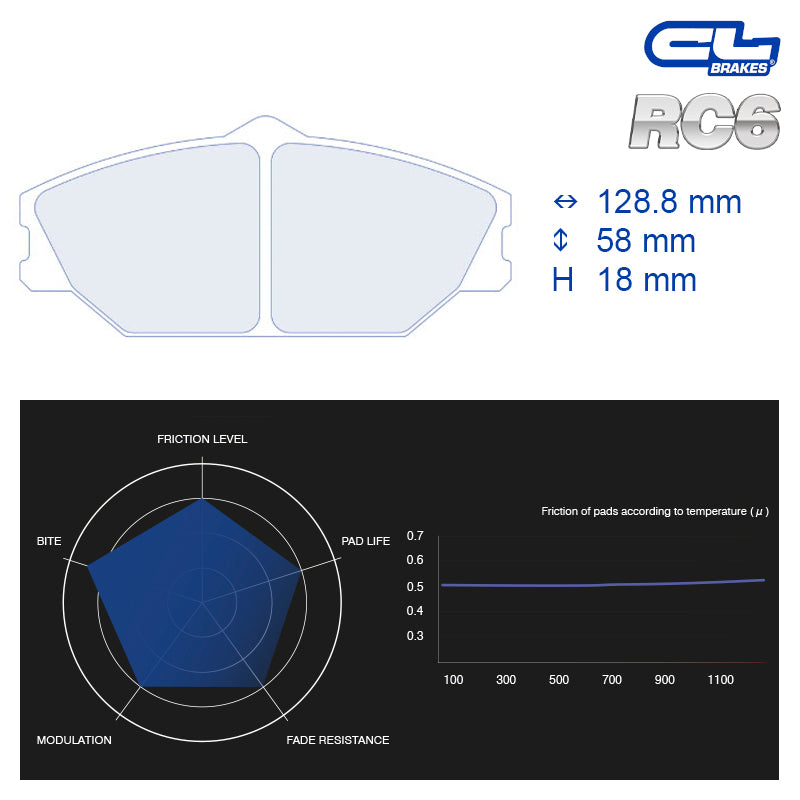 - RC6: coefficient de friction haut u = 0.50. Très grand constance de friction à un niveau éléve. Application Rallye et Circuit