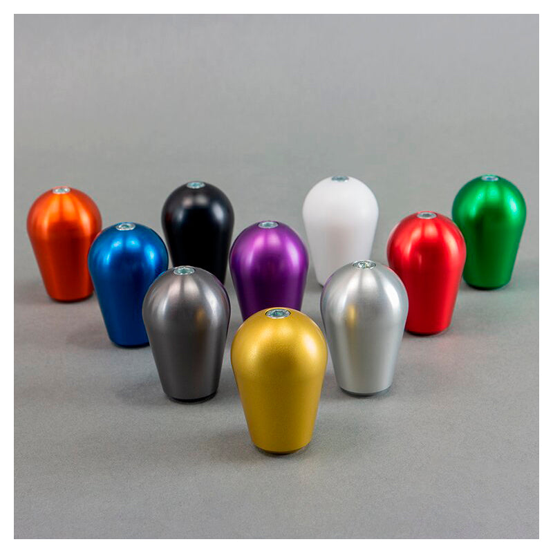 Pomello disponibile in plastica o in alluminio in diversi colori.